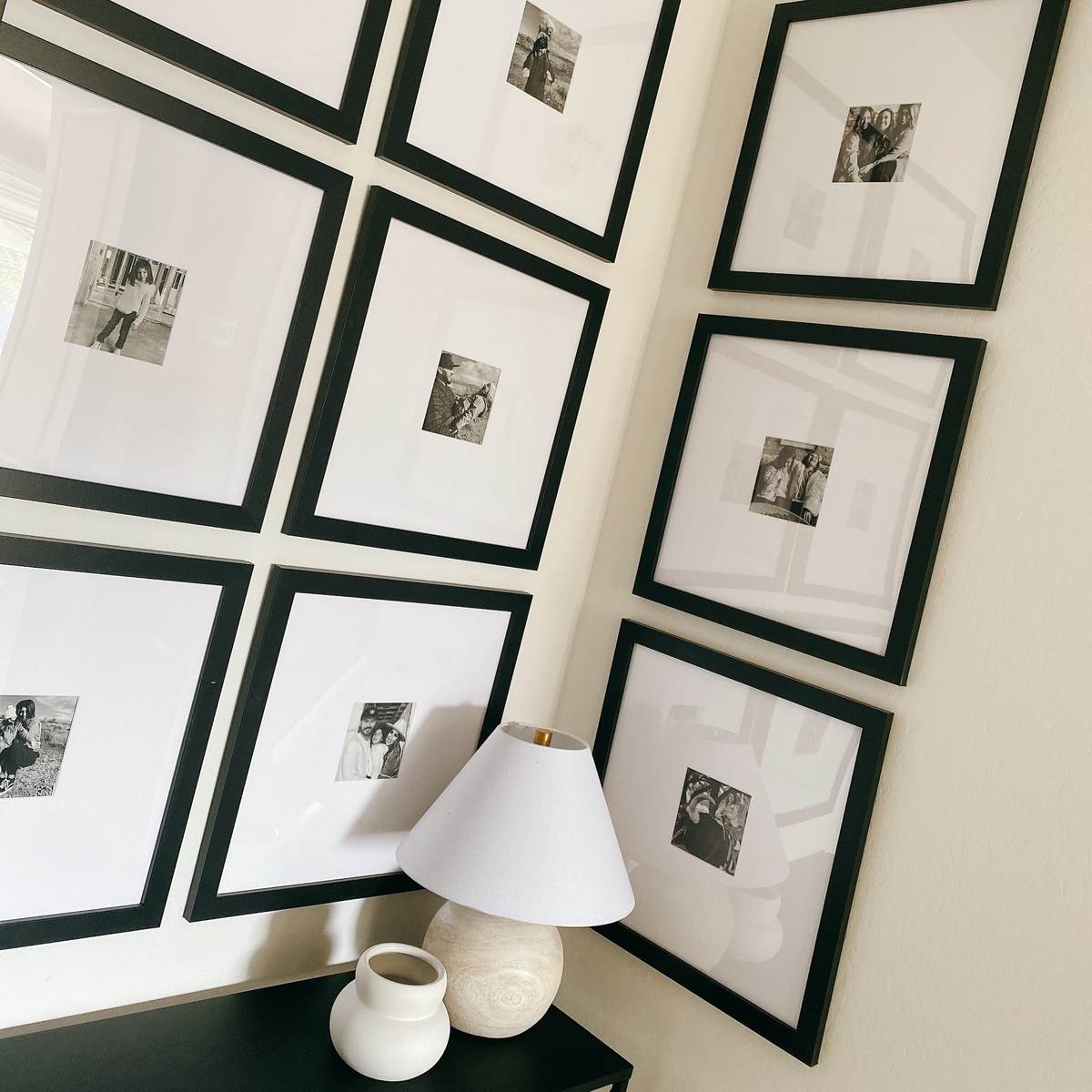 This corner Gallery Wall inspo is easy to recreate on our website. Learn how to customize your mats on our blog today.