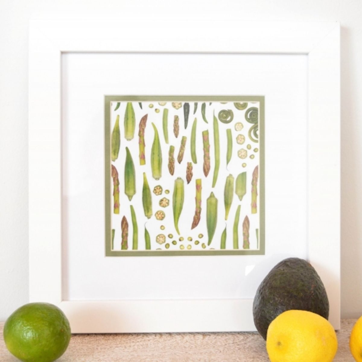 Or, if you don't have the wall space (or you have more takeout menus than recipes) you can add an adorable touch in a mini frame! Again, we think a simple white frame is a way to go, but you can also add a punch of color with a matching interior mat! Select from dozens of mat colors - we went with a simple green to accent the veggies! Once you download the print, visit the frame shop and upload it to your favorite frame!
