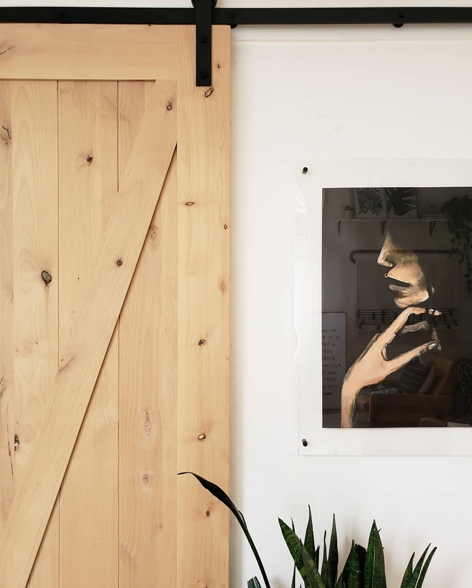 “I picked some of their trendy and popular acrylic floater frames for my moody artwork. I knew the art was going to be large-scale and dark, so I didn’t want any extra weight added to the look from a traditional solid frame. The clear acrylic floaters with their 4 simple matte black hooks were the ideal choice for this project.”
