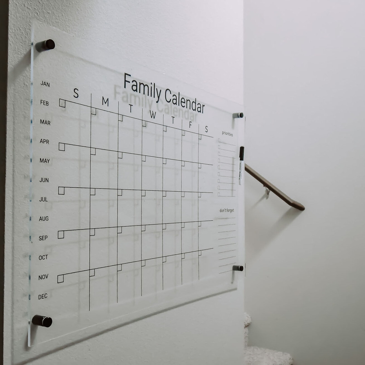 In each and every order of this dry-erase calendar, you'll also receive four wet-erase markers so you can start organizing immediately. Our acrylic calendar introduces a sleek and modern design, that enables you to elevate your home or office decor with a touch of sophistication and individuality, effortlessly. Whether you choose to use it in your kitchen, home office, living room, or bedroom, it's sure to make a statement.