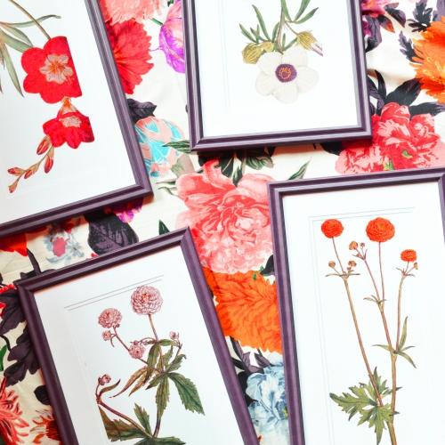 Download the vintage flower prints here! For this series, I chose a perfectly purple frame with a double, super-white mat. To recreate this look, upload the flower prints to the purple frame here!