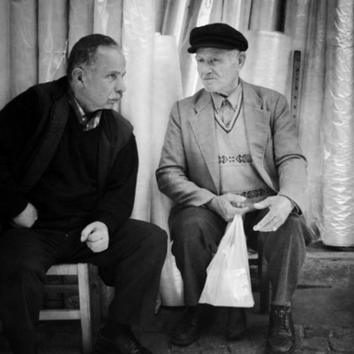 Old Men at the Spice Market by Linda Donahue. Image available for purchase here: https://lindadonahue.com/buy-prints/istanbul-prints/